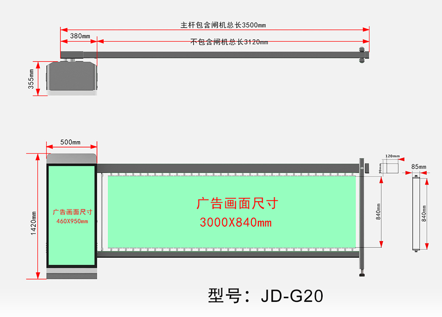 1、特殊设计的连杆传动机构,始终使闸杆 90°运行。