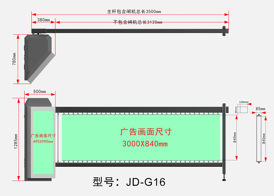5、闸杆广告页片采用无动力旋转机构,纯机械式驱动页片旋转,无额外动力,道闸升降过程中页片自动旋转,不占用升降杆时间。
